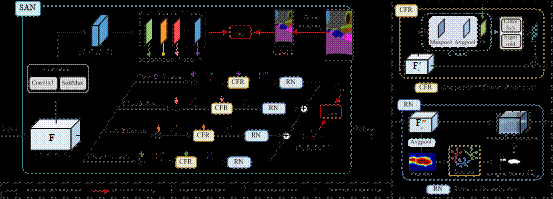 方法:1. 语义感知归一化模块(Semantic-Aware Normalization,SAN)SAN在特征归一化操作中引入语义感知部分,使得模型能够自适应地感知特征类别,以实现不同类别的特征分离,对分离特征单独归一化可以获得类别间互不干扰的中心对齐。具体而言,批次的图片在经过特征提取器后,获得了批次特征