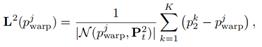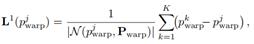 由于第二帧点云可以看作场景流估计的目标帧,即第一帧物体经过运动与第二帧对应物体表面重合,而场景流则是被用来描述这一运动过程。因此,进一步推广到帧间拉普拉斯坐标的计算: