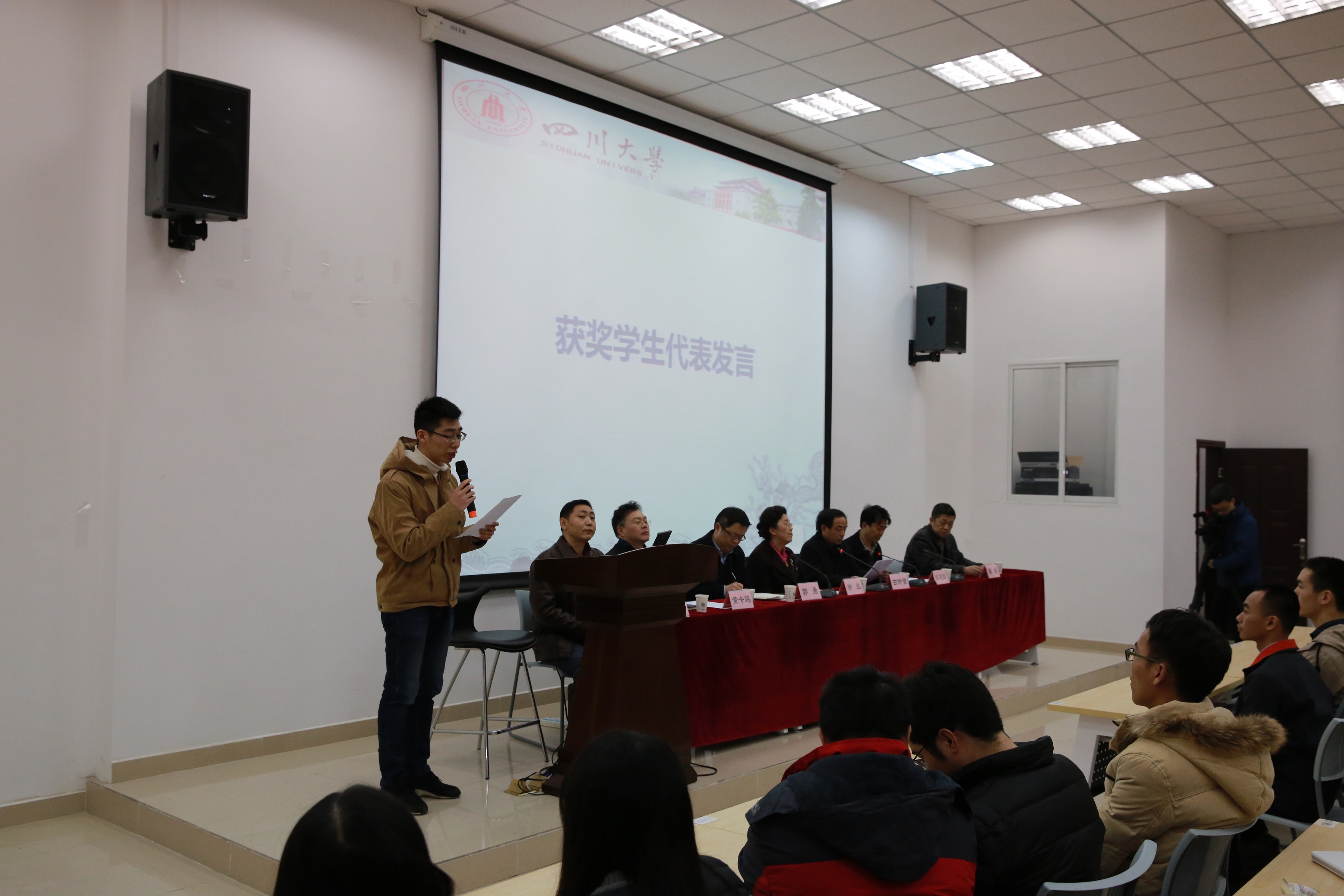 党委书记蒋斌,院长黄卡玛教授,副院长周新志教授和院党委副书记陈笃海,成都万江港利科技股份有限公司总经理贺新先生出席了典礼。学院学生科全体老师,获奖学生和部分学生代表参加了此次颁奖会,颁奖典礼由院党委副书记陈笃海主持。