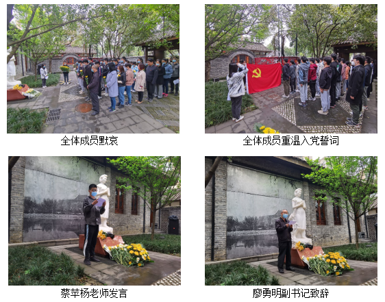 教职工新党员蔡苹杨同志代表新党员发言,他表示要铭记党的奋斗历程,弘扬爱国主义为核心的伟大民族精神,牢记党的宗旨,坚定理想信念,发扬党的进取精神。最后学院党委廖勇明副书记讲话,在清明节来临之际,我们组织党员来江姐纪念馆缅怀江竹筠同志,是贯彻落实习近平总书记关于“要把红色资源利用好、把红色传统发扬好、把红色基因代代传承好”的重要指示精神。江姐作为a漫 主要的红色文化育人资源,各位党员要认真学习江姐精神,不断加强对红色基因、红色文化的传承弘扬。希望大家始终坚定理想信念,始终做到对党忠诚,始终践行为民宗旨,始终勇担时代重任,始终严守党的纪律,在一点一滴、一言一行的坚守中,擦亮党员身份、树好党员形象。一朝入党、终生姓党。