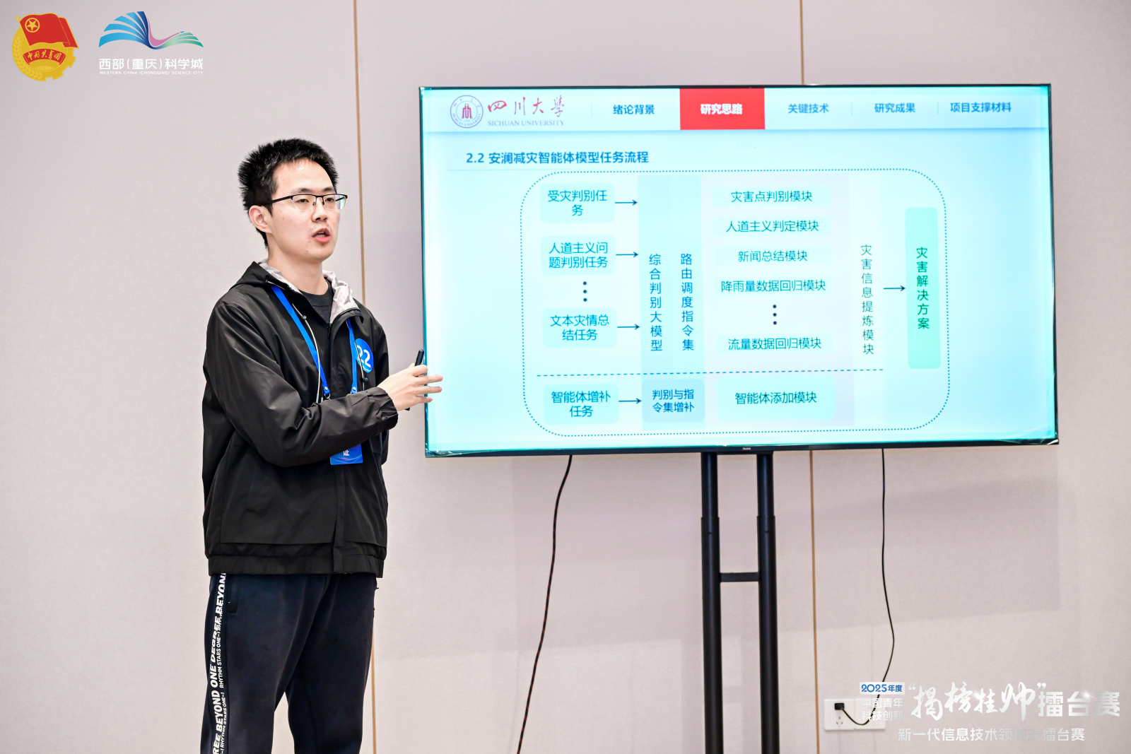 10月26日至28日,由共青团中央、中国科协、教育部、中国社会科学院、全国学联共同主办的第十九届“挑战杯”竞赛2025年度中国青年科技创新“揭榜挂帅”擂台赛“—“新一代信息技术”主擂台赛在重庆举行,吸引了全国378所高校1250余支团队2万余名大学生及青年科技人才参与,榜题数量、参赛规模、作品数量均位居全国各领域擂台赛第二。