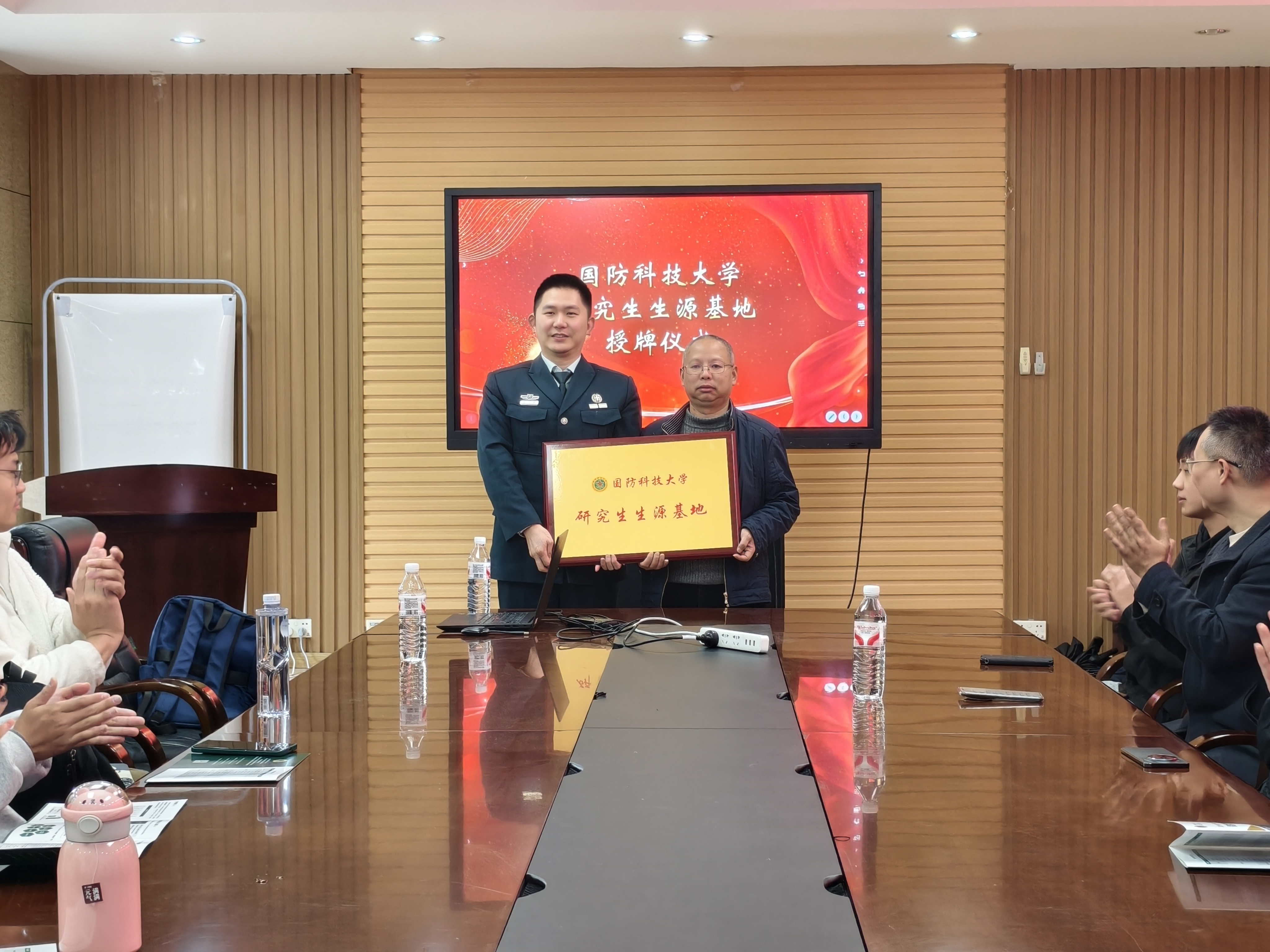 随后,在与会嘉宾与师生的共同见证下,举行了庄重的“国 防科技大学研究生生源基地”授牌仪式,这块象征荣誉与责任牌匾的授予,是对a漫