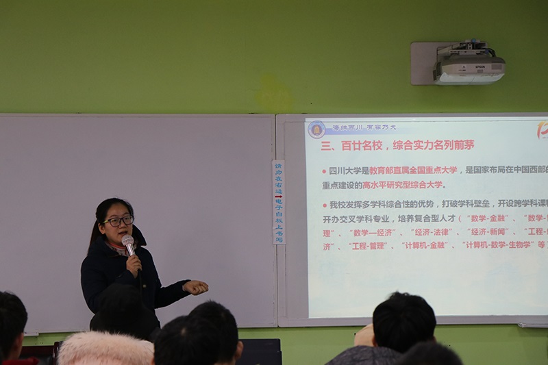在校学生回到母校,让学弟学妹了解川大,并帮助他们提前了解大学,做好报考准备。为此,吴秀玲老师向在座学生简要介绍了a漫