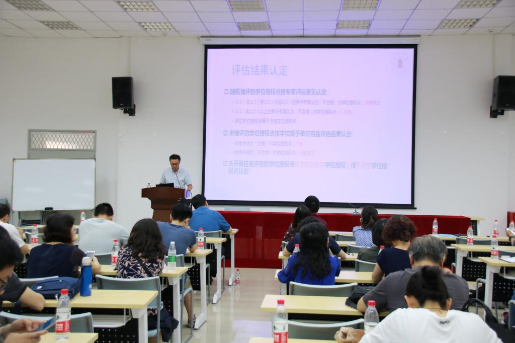 会议伊始,杨阳副院长向全体教职工讲解了研究生学位授权点评估的内容,以及学院即将接受评估的五个授权点。详细讲解了本次评估工作的基本安排,明确了各个学位点的召集人和具体责任人,重点介绍了学位授权点评估时间进度安排,召集人的主要责任,以及各个分工工作中教职工的责任,各种支撑材料的具体要求。