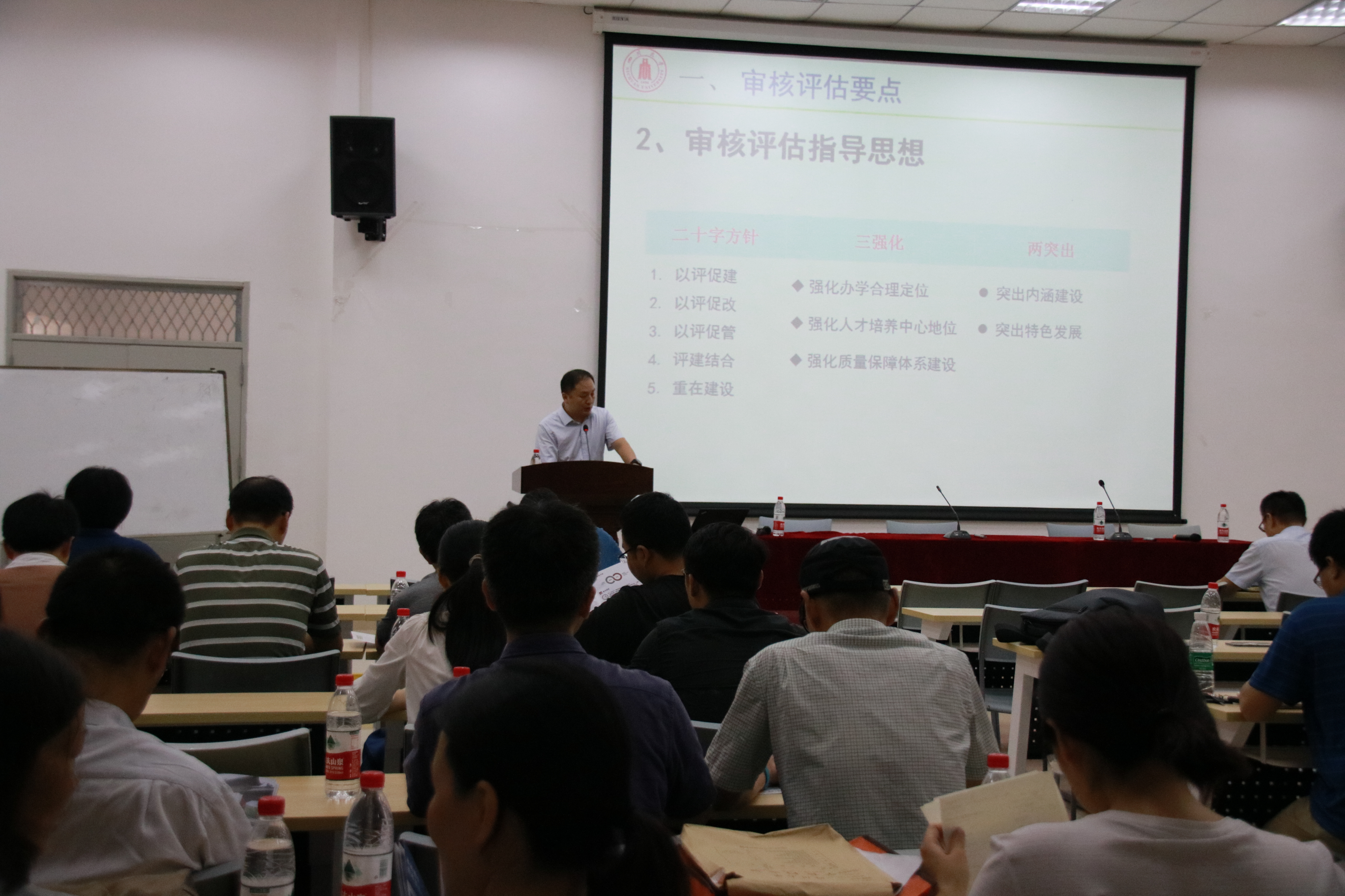 会议伊始,雷印杰副院长向全体教职工传达了学校本科教学工作审核评估推进会的主要内容,强调了目前工作中存在的不足和主要问题,请学院全体教职工认真完善本科教学评估工作中尚需要进一步完善部分,并对全体教职工就本科教学工作审核评估再次开展了培训会。