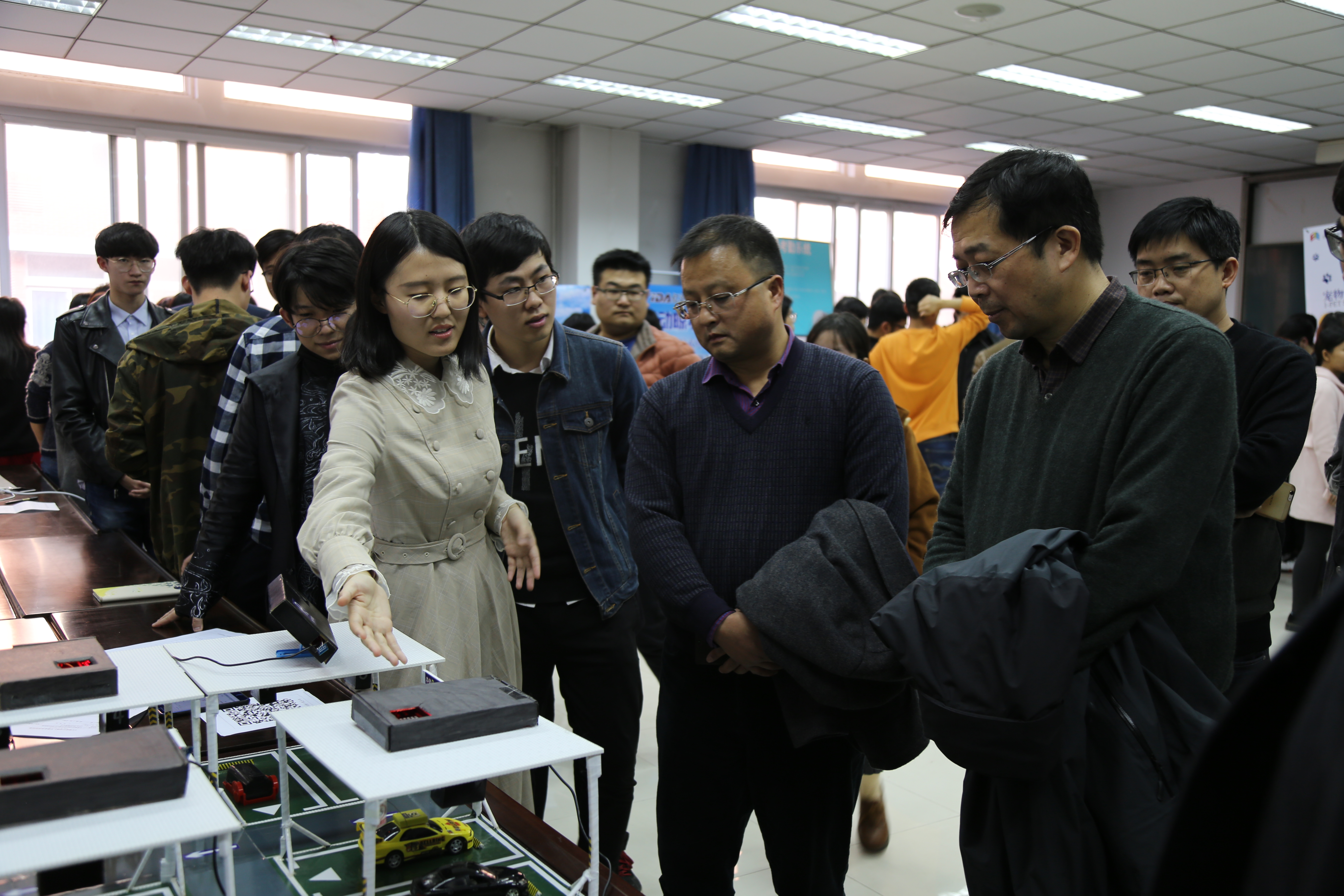招生宣讲过后,一行人与郑大信息工程学院领导、老师一同观摩了该学院《创新创业教育》课程和最后的创新创业成果汇报。