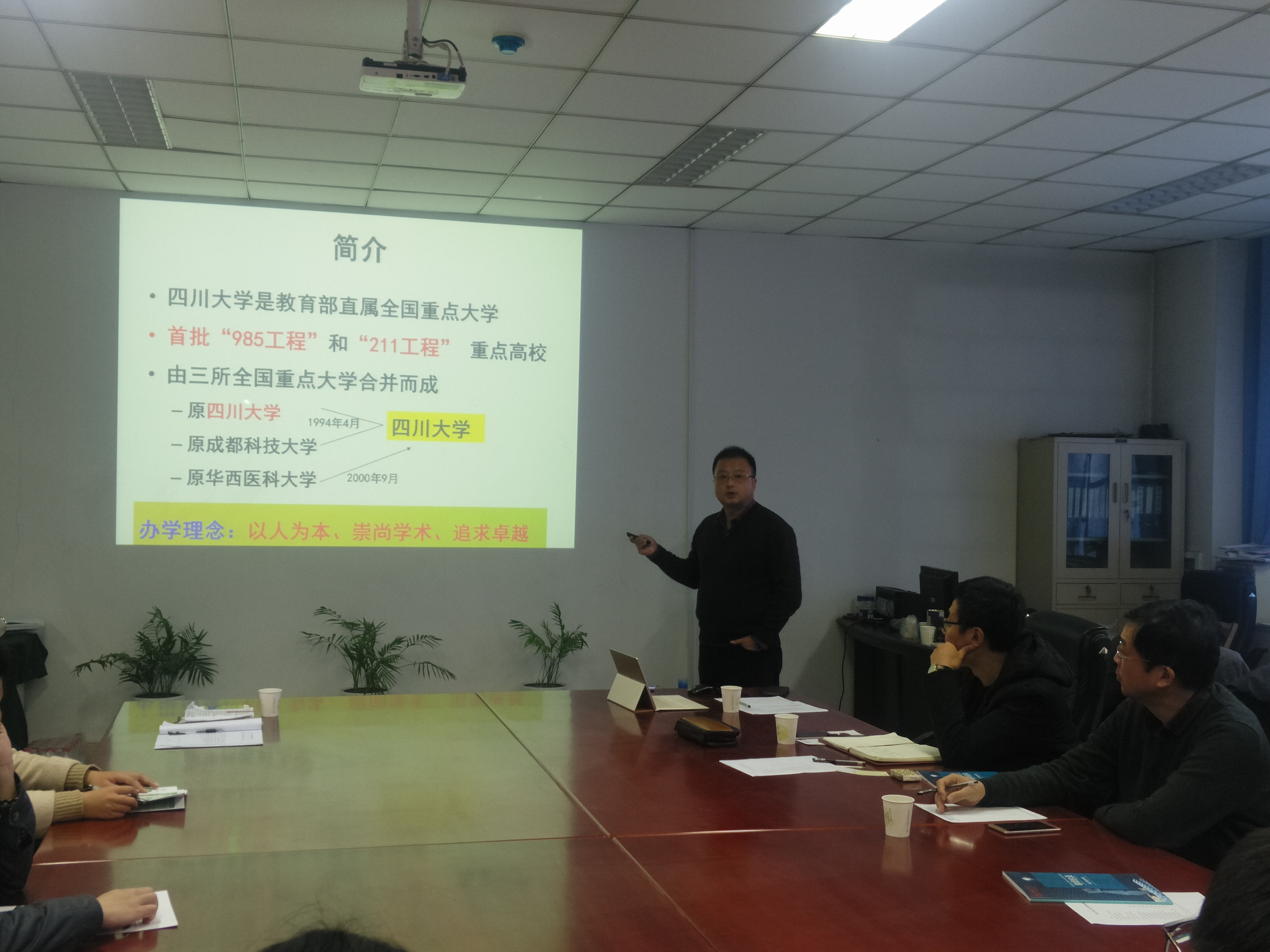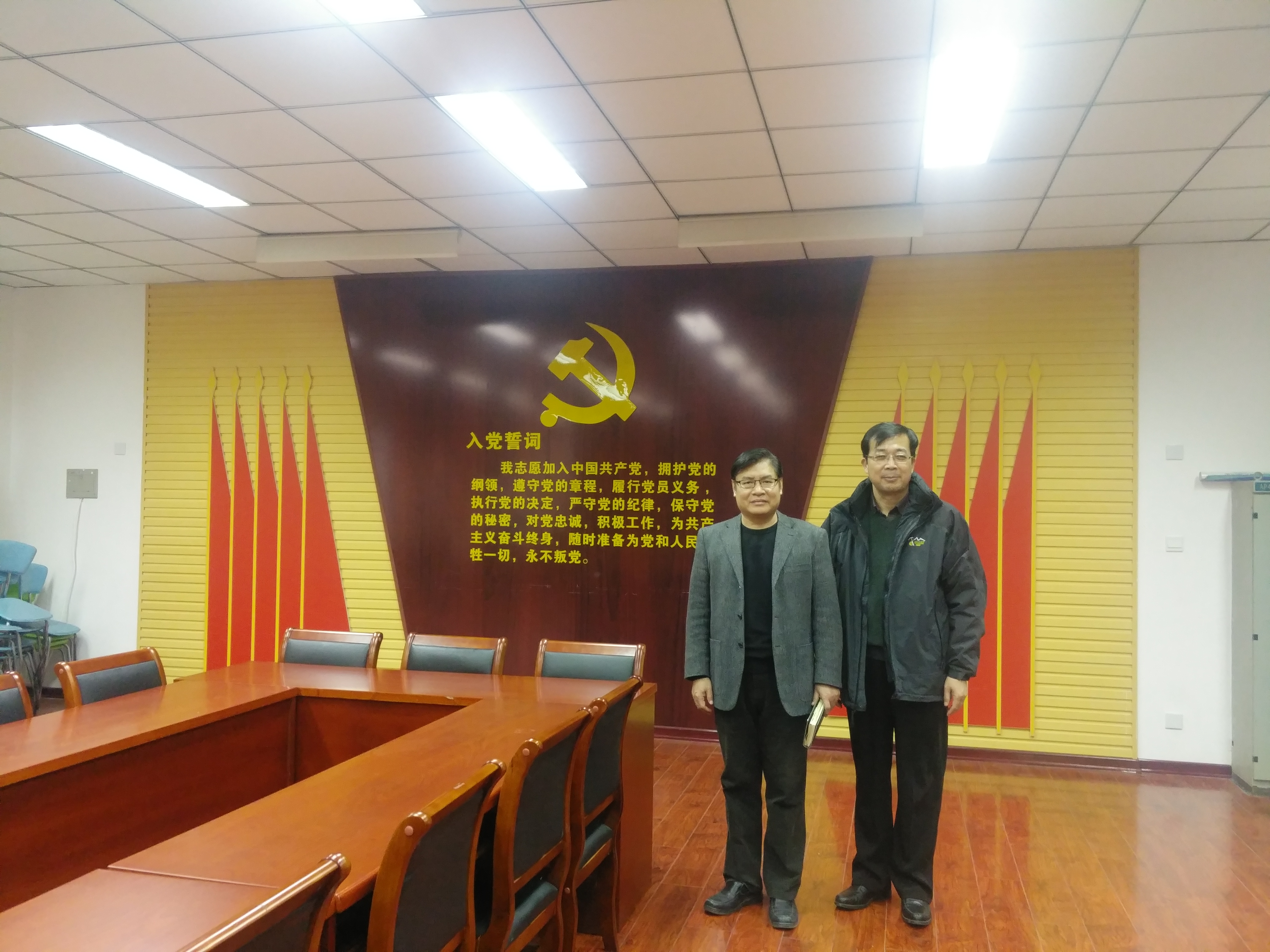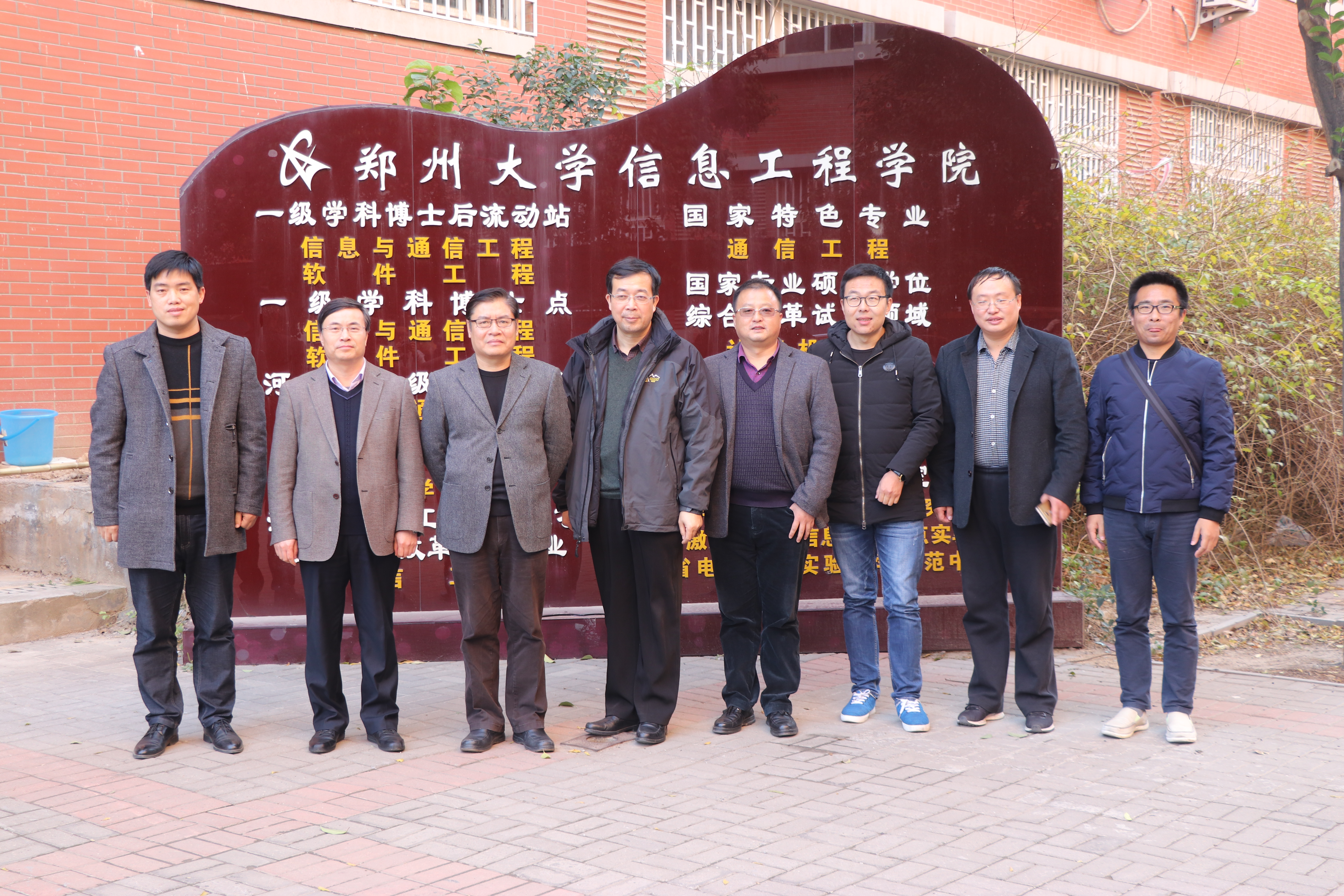 2018年11月22日学院邰明松书记、张启灿副院长、杨晓庆教授和李军华老师一行四人赴郑州大学信息工程学院开展党建工作、研究生培养调研交流和研究生招生宣传工作顺利完成。22日上午九点钟,在郑大信息工程学院李海涛老师的陪同下,学院一行人先参观了该学院的本科生创新实验室和科技竞赛成果展。然后与该学院党委书记胡亚杰一同参观了党员活动室、工会之家,而后与郑大信息功臣学院党委胡亚杰书记、张国强副书记、叶阳东副院长、团委李海涛书记、辅导员王成老师一起进行了关于学生党建、研究生培养、学院学科建设、工会建设等方面进行了深入的探讨。会上郑大信息工程学院胡亚杰书记对我们一行人的到来表示热烈的欢迎。学院邰明松书记对郑大信息工程学院的接洽表示感谢。双方就学院发展过程中的经验做了友好的交流。同时双方都表示希望能够学习对方的成功经验,提升自己的管理能力,为学院以后的发展提供新的动力。