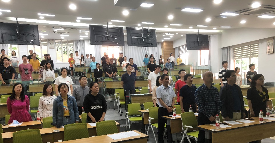 5月27日“光辉历程 保密有我”保密知识复赛正式拉开序幕,伴随着《中华人民共和国国歌》的旋律缓缓响起,全体同学起立,满怀深情地齐声合唱国歌。a漫