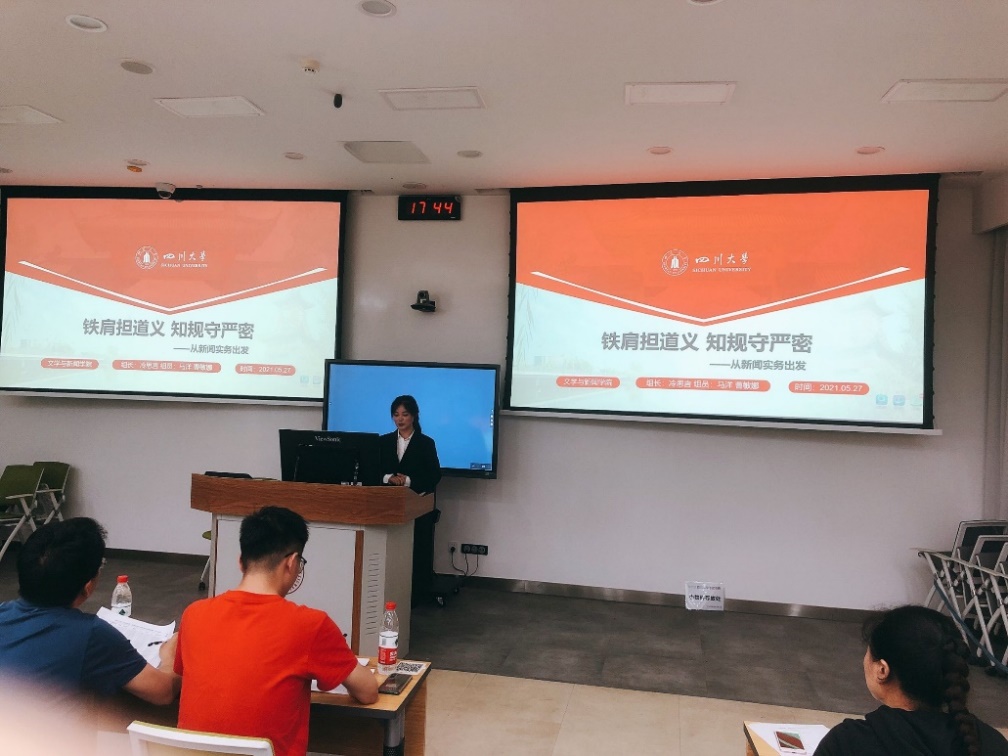 (国家保密学院)冯国英院长高度评价了大家的演讲,并与大家分享了自己在演讲方面的心得体会,对选手们提出了更高的要求,强调了保密的重要性,提出保密战线历来是必争,必守,必保之重地,川大学子,坚守有容之心,方可海纳百川,华夏青年,不忘高远之志,必当挥斥方遒。