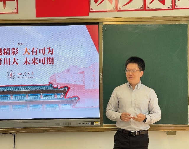 5月12日,招生组王君教授和朱婧老师赴山东省济南市历城二中进行招生宣传活动,并与历城二中学校领导开展了座谈会,会上希望未来进一步加强与川大的交流和联系,并愿意为川大输入更多的优质生源,座谈会后,王君教授为在校学子做了宣传讲座,为在校学子报考川大埋下了小小的种子。