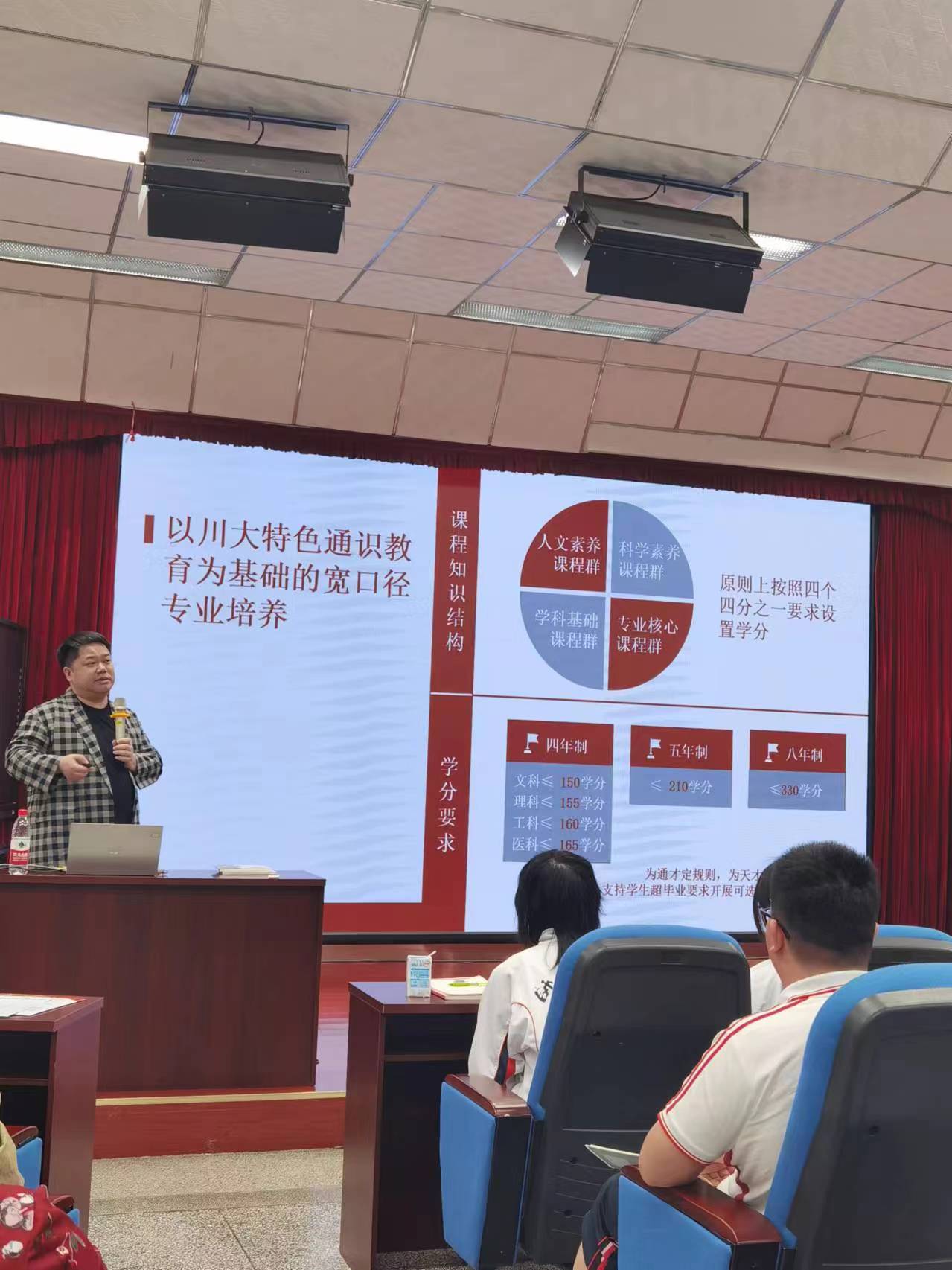 副院长雷印杰教授全面介绍了川大的整体情况及我校的办学特色和优势,为学子们了解川大奠定了基础。接着,文学与新闻学院的副院长罗鹭教授对我校强基计划的招生政策进行了详细解读,并重点介绍了文学与新闻学院的强基计划招生专业、招生政策等信息,为志向报考强基计划的同学提供了有效的信息。最后,由数学学院的范久瑜副教授围绕a漫