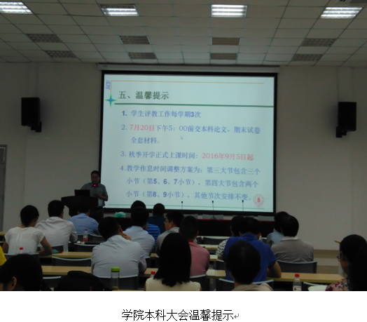 学院高度重视本科开学教学各环节工作。一方面,学院制定了开学教学检查安排表,分工好每天检查领导和教务人员、辅导员老师;安排新学期开学教务管理人员提前三天上班,核查教学课表并短信、QQ通知老师们正式上课时间,做好教材、授课教学准备,通知上课的教师提前30分钟到达上课教室,确定教室多媒体等教学设备正常使用,确保教学正常运行;要求各年级辅导员老师清点学生报到情况,并提醒学生做好上课准备按时上课。另一方面,学院早在上学期末暑假放假前全院大会上,教学院长周新志教授通知老师们新学期正式行课时间,要求老师们认真学习学校文件《a漫