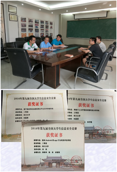 2016年9月16日下午,信息安全系针对在2015年度全国大学生信息安全技术竞赛中,本专业学生三只参赛队取得两个全国二等奖、一个三等奖的良好成绩,在教研室召开了竞赛总结会。