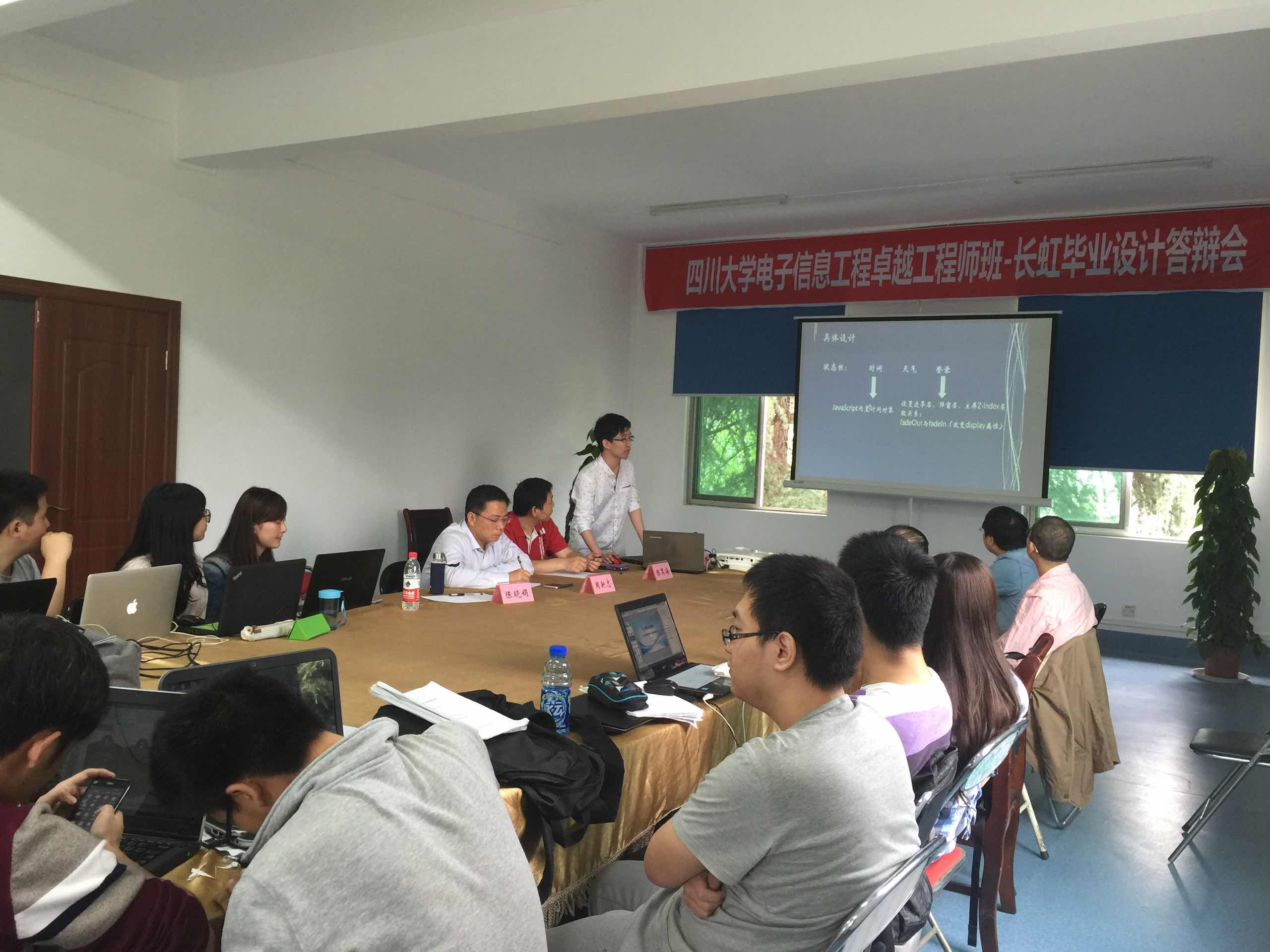 卓越工程师班毕业论文(设计)答辩在绵阳长虹培训中心成功举行。参加本次答辩的老师有学院主管教学工作的副院长周新志教授、徐家品教授、党委陈笃海副书记、2012级本科辅导员陈晓娟老师、长虹培训中心的罗冬梅老师、蔡琳老师、李力老师,卓越班在长虹实习的14名学生全部参加了本次答辩。