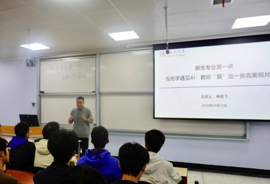 光学工程系“走进光学”科普系列讲座迎来首场精彩活动。申俊飞副教授以“当光学遇见AI:教你“算”出一张完美照片”为题,为大一新生开启了一场跨越物理、数学与代码的视觉奇幻之旅。