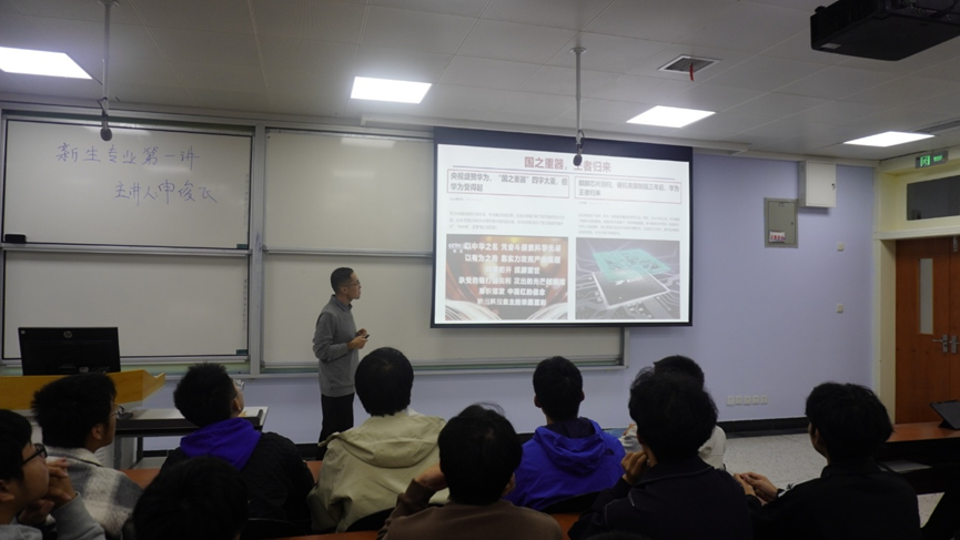 申老师结合自身求学经历与职场感悟,从学业深耕、能力提升、人脉积累、遗憾规避四个方面展开分享。他以 “如果重来” 的假设视角,复盘了大学阶段易犯的误区,强调了尽早明确目标、持续深耕专业的重要性。针对新生普遍关心的考研、就业、留学等发展方向,老师结合行业趋势给出了针对性建议,鼓励同学们平衡好学习与实践的关系,多参与科研项目与实习实践。现场互动环节中,新生们围绕个人发展困惑积极提问,老师逐一耐心解答,现场氛围真挚而热烈。