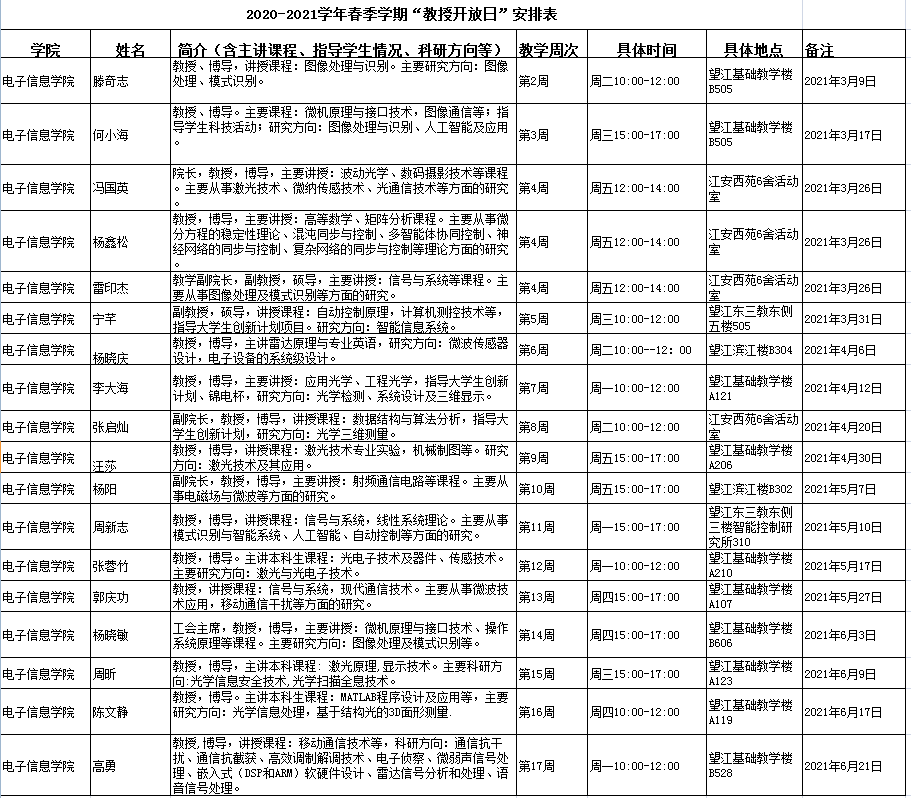 a漫 2020-2021学年春季学期“教授开放日”安排表