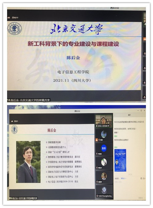 学院特邀北京交通大学国家级教学名师陈后金教授作为主讲嘉宾通过在线做了“新工科背景下的专业建设与课程建设”的主旨报告,与参会者进行了深入的交流和探讨。