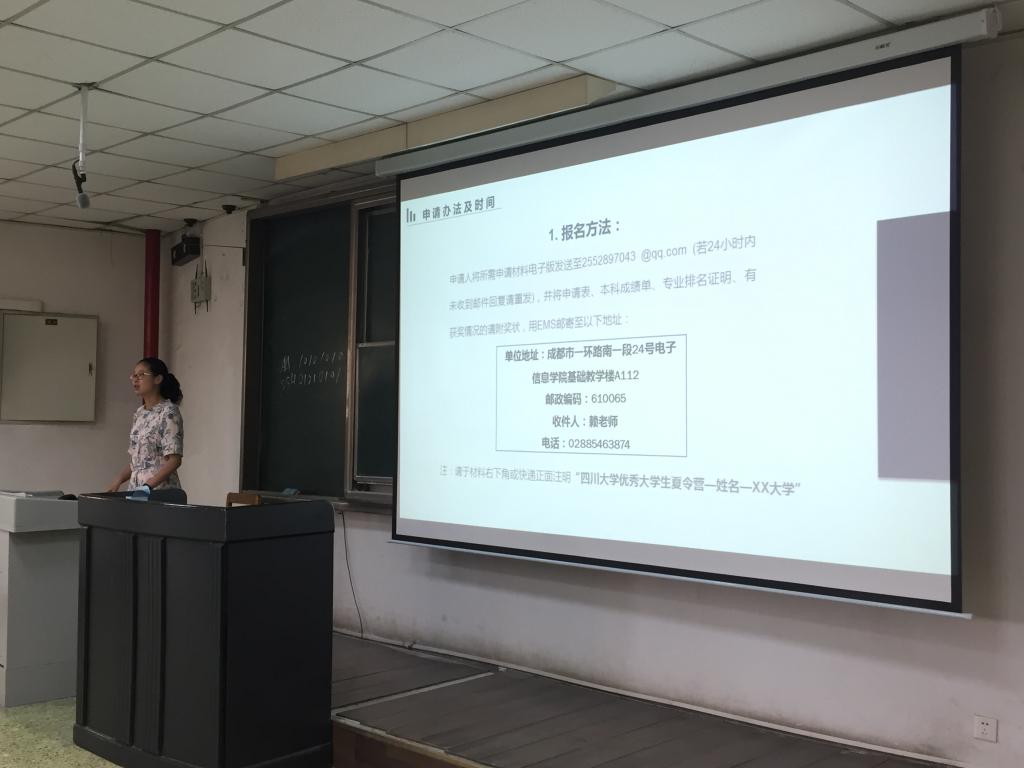 研究生教育的整体情况、学科优势、特色培养、奖助金设置、人才培养等,随后由各研究团队分别介绍了各自的概况、优势、招生就业情况等,最后,赖老师还对我们学院2018年暑期夏令营进行了介绍。宣讲结束之后学生们表现出了极大的兴趣,并踊跃提问,老师们对同学们提出的问题一一做了详细的解答。