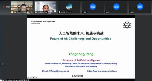 2022年7月6日14:00,英国曼切斯特城市大学人工智能教授(Professor of Artificial Intelligence) 、曼城大校级“先进计算科学研究中心”(Centre for Advanced Computational Science, CfACS)主任彭永红教授应a漫
