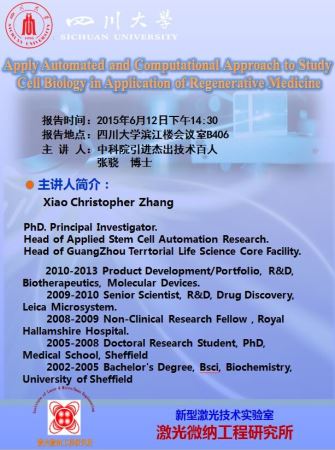 报告题目:Apply Automated and Computational Approach to Study Cell Biology in Application of Regenerative Medicine