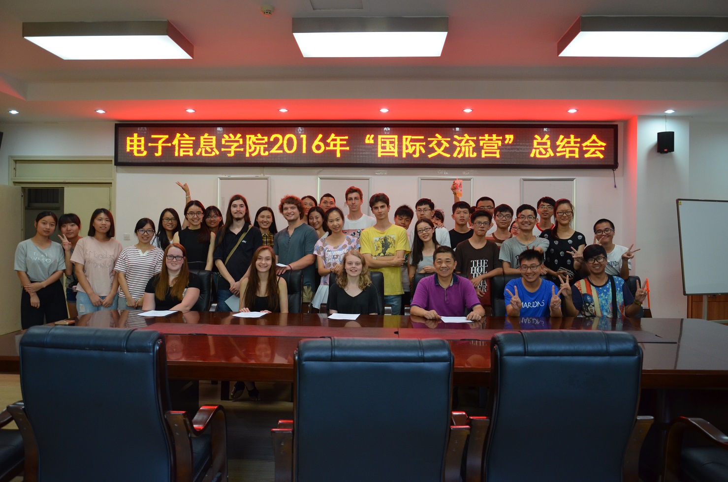 经过了两周与外国留学生的学习交流,本次“国际交流营”活动也接近了尾声。2016年7月15日,我们庄重地举办了交流营的闭幕仪式,纪念这一段令人难以忘怀的时光,出席本次交流营闭幕式的有电子信息学党委蒋斌书记、李运国老师以及陈慧媛老师。