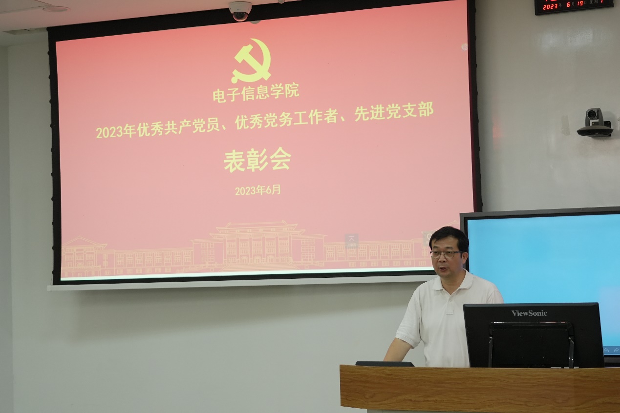 党委于2023年6月19日上午在望江校区基C102教室召开了2023年优秀共产党员、优秀党务工作者、先进党支部表彰大会,学院党委书记邰明松、党委副书记廖勇明、优秀个人及先进党支部代表参加了本次大会,表彰会由学院党政办主任李运国主持。