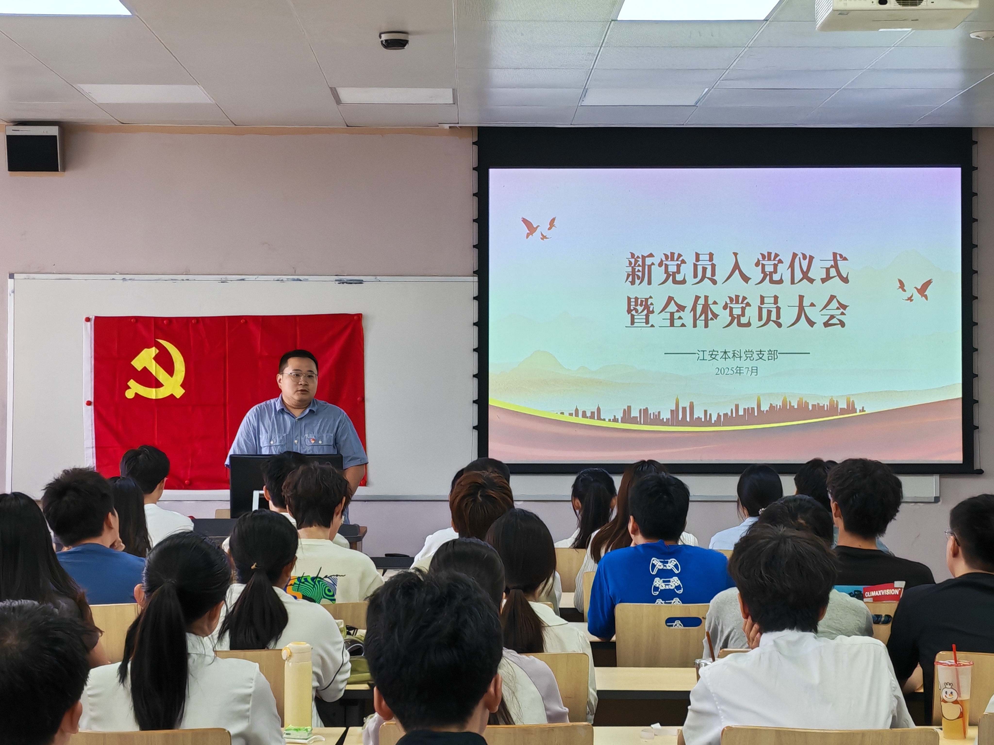 江安本科党支部于江安校区一教A106举行新党员入党仪式。支部书记申鑫、支部党员以及入党积极分子代表参会。