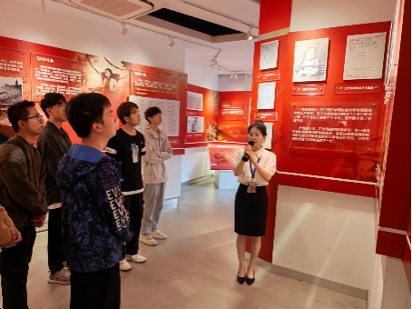 图为同学们在讲解员的带领下参观江姐纪念馆