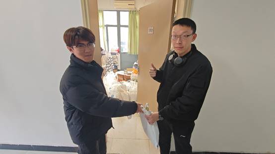 活动中,陈林老师与学生党员们走进一间间寝室,将满载着祝福的礼包亲手递到考研学子手中。礼包内不仅有实用的计时器、暖宝宝和暖心的零食,更附上了写满鼓励话语的小卡片。陈林老师还与备考同学亲切交流,细致询问他们的复习进度与生活状况,并叮嘱大家要劳逸结合,保持良好心态,以最佳状态迎接挑战。