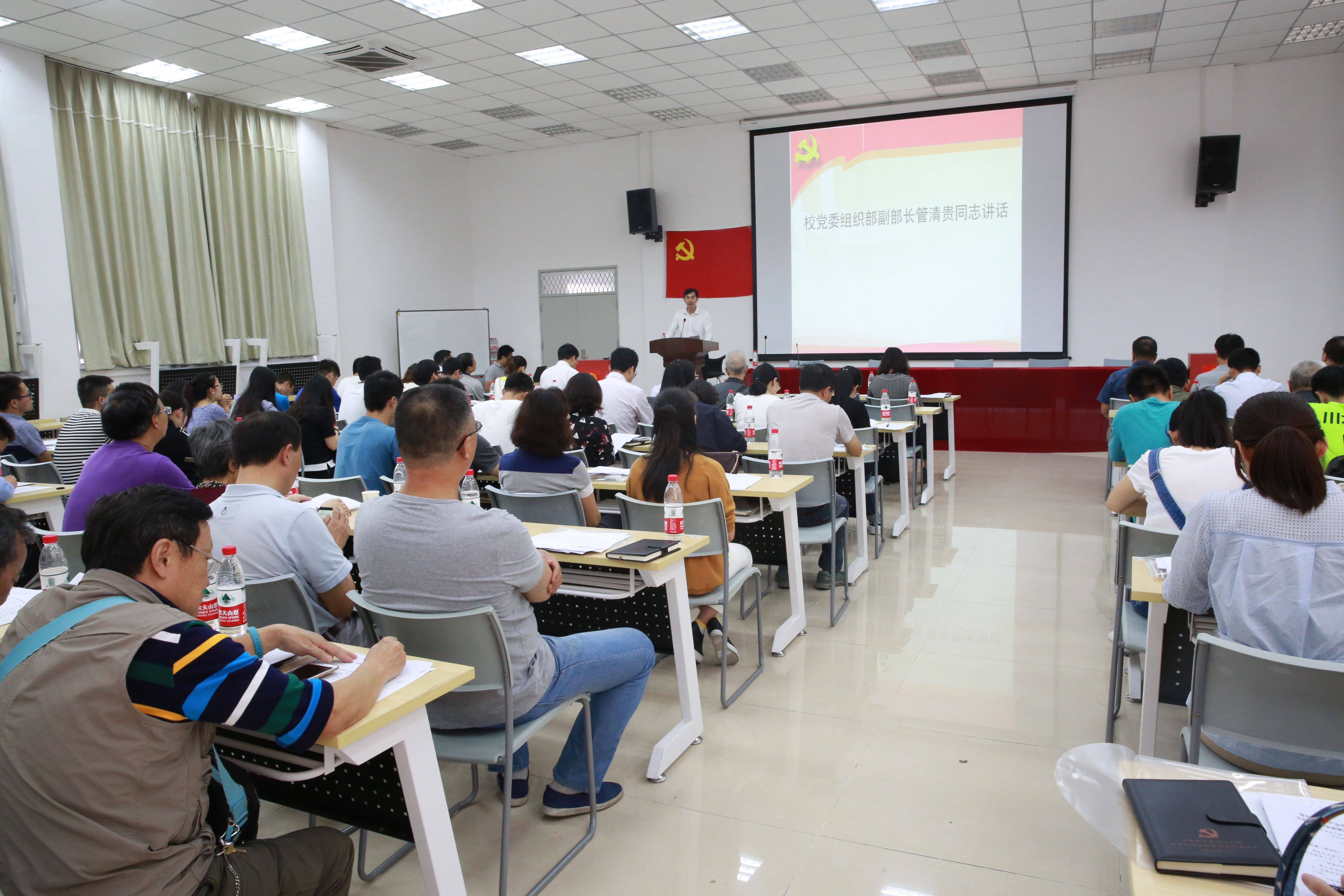 正式会议首先由校党委组织部副部长管清贵同志上台发表讲话,管部长表示学校目前在党建等方面取得了众多成就,感谢a漫