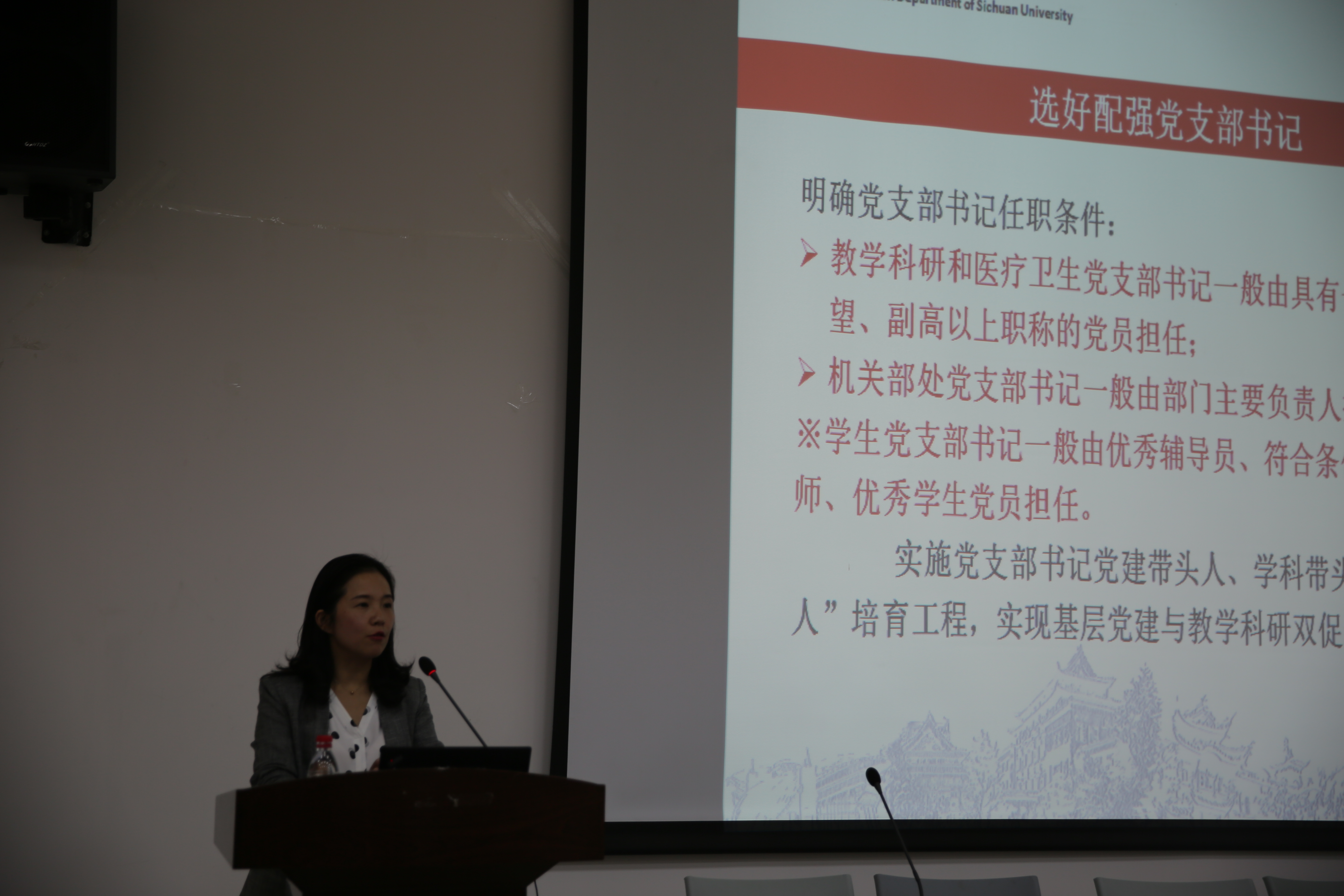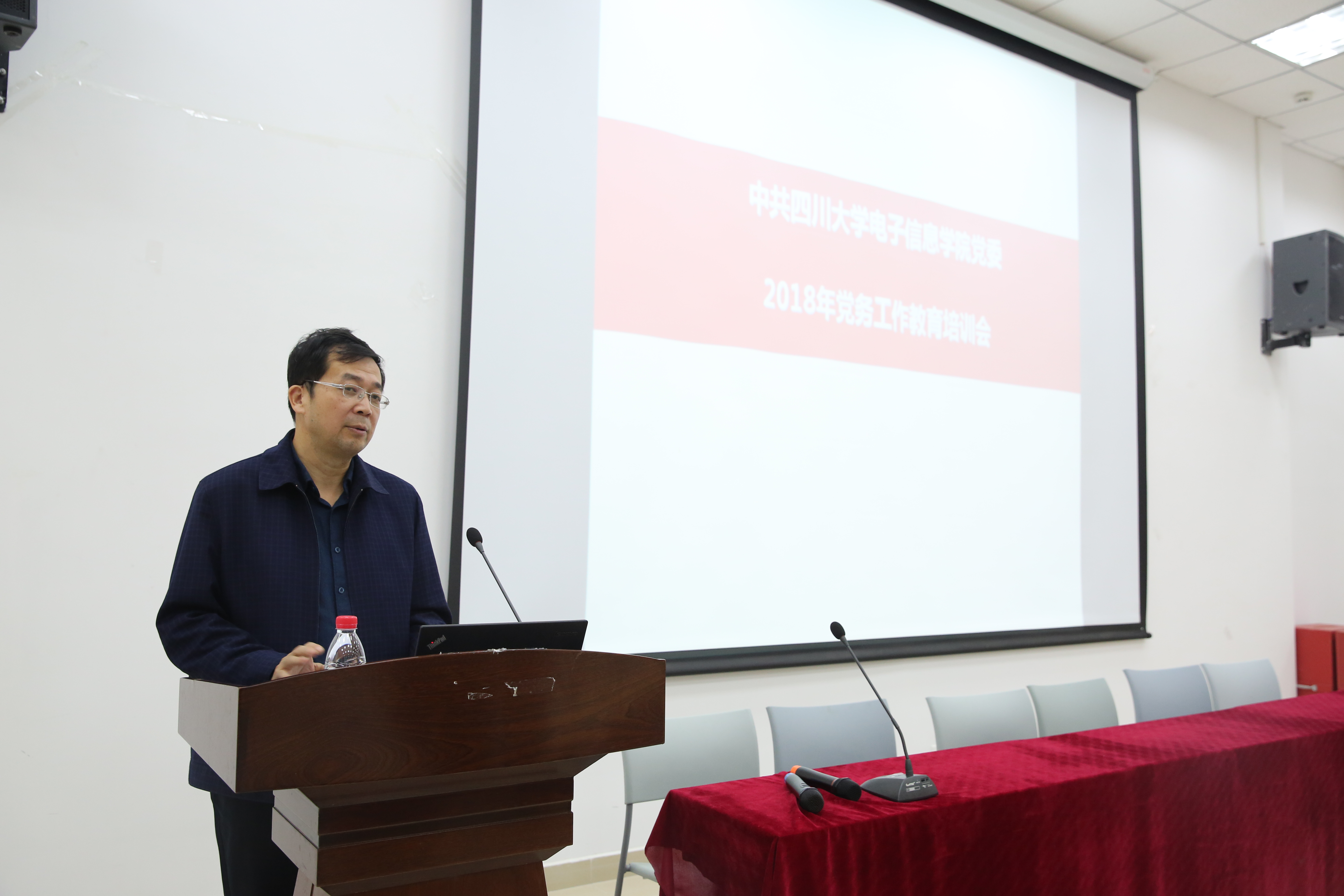 党委2018年党务工作教育培训会在望江校区西五教学楼附101会议室举行。此次会议特别邀请了校党委组织部范瑾副部长来做党务教育培训并指导工作。学院党委邰明松书记、学院党委委员、工会主席杨晓敏副教授,党委委员郭庆功教授,党委委员、党政办李运国主任和副处级专职组织员陈炳周副教授等出席了会议。学院党委副书记陈笃海同志主持了会议。