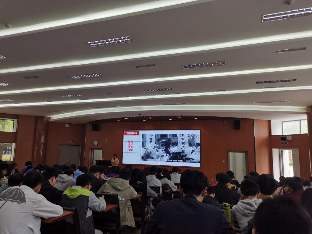 当进行到学生运动的内容时,何老师期望我们在座的同学们传承五四精神,也像那时的爱国青年一样,争做热血的时代新青年。