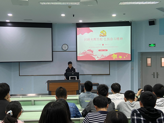 活动伊始,四班的班长王斌首先从中国共产党创立、大革命、土地革命、抗日战争、全国解放战争五个时期的起止时间和历史大事简单阐述党的历史分期。接着,王斌通过中共一大到中共三大的基本内容和意义向同学们讲述中国共产党的发展历程。随后,王斌讲解土地革命战争的曲折发展和伟大历史转折、第五次反围剿的失败和长征、遵义会议、抗日战争胜利、解放战争等史实。王斌表示:中国新民主主义革命的胜利,结束了帝国主义、封建主义和官僚资本主义在中国的统治,建立了人民民主专政的新中国。中国人民为了自由、民主、独立和统一整整奋斗了一个世纪,最终在中国共产党的领导下,取得了中国民主革命的伟大胜利,所以才会有我们现在的幸福生活。我们要牢记这段历史,感悟党的初心使命,传承党的红色基因。活动结束后团员同学纷纷交流了各自的学习体会。