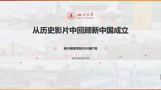活动伊始,七班的班长雷纯庭首先带领同学们共同回顾新中国成立历程,从重庆谈判讲起,回顾毛泽东率领中国共产党代表团从延安飞抵重庆,参加这次不太友好但不得不去的会议;而后,国民党集团单方面撕毁重庆谈判签定的《双十协定》,解放战争由此开始;在中国共产党领导下的中国人民解放军英勇奋战,彻底摧毁了国民党的反动政权,基本上完成中国民主革命反帝反封建最主要的历史任务,建立起了全新的中华人民共和国。接着,雷纯庭通过播放电影《重庆谈判》的片段来展示在当时的中国共产党和中国国民党两党就中国未来的发展前途、建设大计而在重庆进行的一次历史性会谈。之后,雷纯庭班长就重庆谈判讲解了这次会谈把国共两党的合作推进到了一个崭新的高度,在某种意义上决定了战后中国的政治走向和政治格局,同时也为国共两党关系的发展留下了宝贵的历史经验。紧接着,雷纯庭班长播放了一段解放战争时期中国人民解放军是如何一步一步打败了曾经不可一世的国民党军队的视频,从直观上看到了解放战争的三个阶段中,解放区是如何一步步扩大的。最后,以电影《建国大业》中新中国成立的片段作为此次讲解的结束,警醒人们居安思危,从历史中学习教训,吾辈当自强。