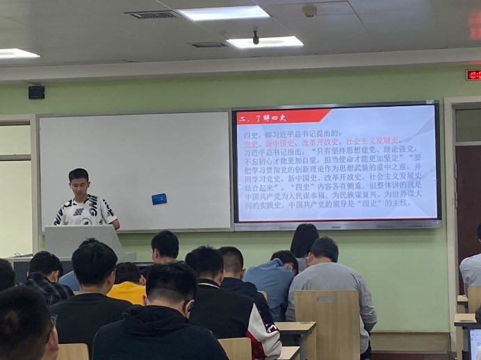 在观看电影的同时,我们也准备了以“学四史”为主题的优秀团员代表讲话活动。学生宣讲团围绕“学百年党史 汲奋进力量”的核心主题,开展宣讲,提升宣讲理论水平、扎实打好理论基础。通过讲述党的百年故事,弘扬党的伟大精神,凝聚新时代广大青年学子爱国奋斗的强大动力。激发广大毕业生奋进前行、奔跑追梦,把青春之我、爱国之情、报国之志融入实现中华民族伟大复兴中国梦的伟大事业中,献礼建党100周年。