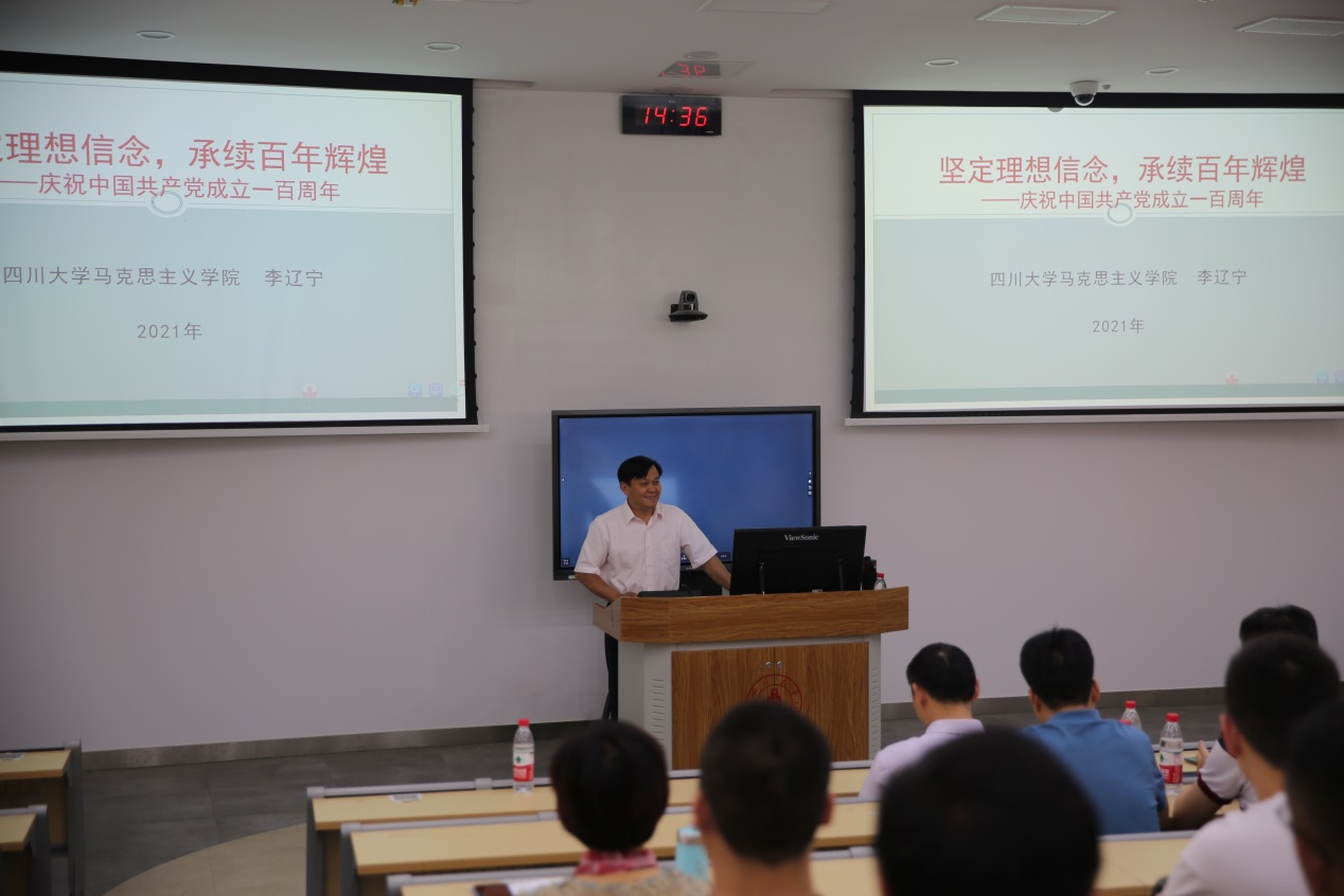 党史学习教育宣讲团成员李辽宁教授作专题报告。学院党委邰明松书记主持会议。学院全体教师和学生党员200余人参加了本次专题报告会。