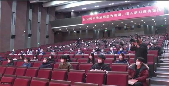 活动第一部分,围绕“以习近平法治思想为引领,深入学习宣传宪法”,组织三个支部的同学同步收看了“宪法晨读”活动直播。