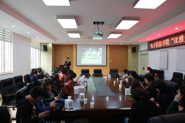 “优雅女性魅力课堂”讲座。学院党委书记蒋斌、副院长周新志和冯国英等院领导以及近30名女教工参加了活动。活动由工会主席熊淑华主持。