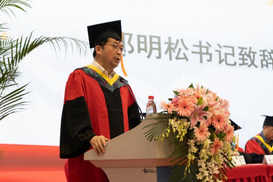 党委书记邰明松首先代表学院向2022届287名研究生和316名本科生表达了最热烈的祝贺和最美好的祝愿。邰书记深情的回顾了同学们成长和进步的的点点滴滴, 在离别之际,邰书记寄语同学们要牢记a漫