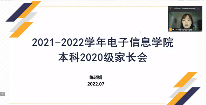 为指引学生尽快适应大学三年级学习生活,增进家长、学校、学院与学生之间的互动联系,增强学生的专业认同感与学院归属感,2022年7月10日19点,2020级辅导员陈晓娟老师主持召开20级学生的线上家长会。200余位家长参与此次家长会,积极与辅导员老师进行沟通交流。