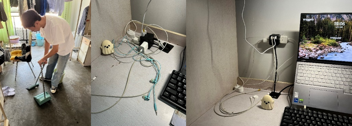 同时,2022级研究生辅导员何阳老师、兼职辅导员王伟丁老师组织研一新生开展寝室卫生和安全检查,指导各班级、各宿舍制定寝室劳动轮值表,通过轮值来保证所有寝室成员参与到宿舍日常管理中,包括寝室卫生的打扫、置物台与窗户玻璃等清洁、个人物品的收纳与整理等。通过对研究生的日常管理,从宿舍、班级、校园等方面加强日常生活劳动教育,立足学生个人生活事务处理,将劳动教育植入学生日常。