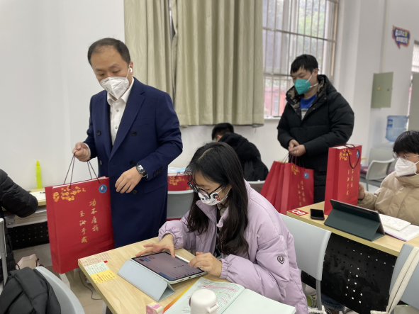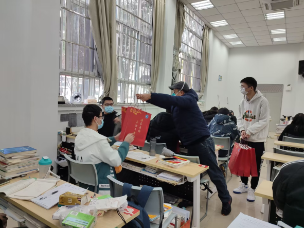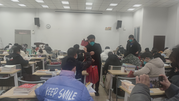 慰问现场,学院领导们将精心准备的考研慰问品发放给考研学子们,在发放时,领导们与同学们热心交谈,关心同学们近期的心理状况,询问同学们的复习进展,鼓舞同学们坚持就是胜利,表达了学院对考研学习深切的关怀。