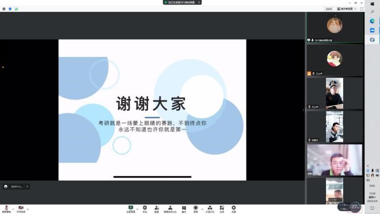 此次考研主题班会的成功召开,不仅使大三的同学们对现在的考研形势和就业现状有了进一步的认识和理解。同时还激发了同学们考研的热情,坚定了部分迷茫的同学考研信心,也使他们更加明确了自己的考研目标。希望同学们合理分析形势,明确考研方向,坚定考研信念,科学规划时间,积极备战考研。