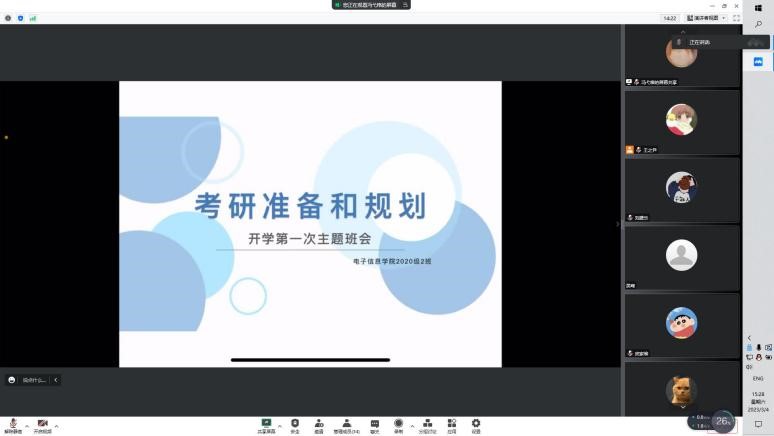 2020级2班召开大三下学期第一次线上班会,主题为考研复习规划。2020级2班团支书冯弋格和班长王之尹组织推进本次主题班会活动,为即将备考研究生入学考试的同学答疑解惑,得到了大家的广泛参与。