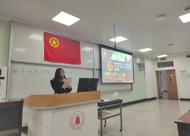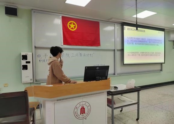 如朝阳般蓬勃,澎湃的共青团歌拉开了本次活动的序章,紧接着,主持人王首皓用充满激情与活力的声音点明了本次活动的主题:坚持自我革命,强化责任担当,深入学习贯彻党的二十大精神与两会精神。随后邀请本次活动的主讲人胡嘉欣进行内容讲解,主讲人胡嘉欣用饱满且富有力量的声音从“学习贯彻二十大精神”和“学习贯彻两会精神”两个方面进行讲解,引发了各团支书的思考。讲解结束后,主持人通过轻松愉悦的小游戏“逛三园”在团支书中选出三位进行二十大学习心得分享。分享结束后,各班团支书们互相讨论总结工作中遇到的问题并分别提出,由组织部部长李云天进行逐一解答。最后,组织部部长李云天对各班团支书们今后的工作开展提出建议与期望,本次活动至此落下帷幕。
