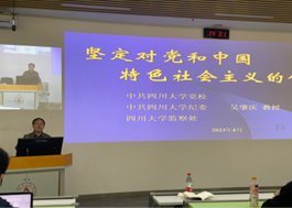 纪委副书记吴肇庆教授为我们讲授如何正确认识社会主义和资本主义发展的历史进程、正确认识我国社会主义改革开放实践过程中的不良思潮以及社会现象对人们思想的影响,他以激情澎湃的话语,充实有力地论述介绍了坚定的信念对党和国家的发展和贡献的必要性和重要性。