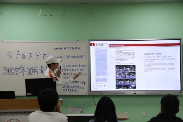 活动最后,组织部部长王上飞同学进行了工作总结,并对此前团支书们提出的种种工作疑虑与困难进行了工作经验分享。