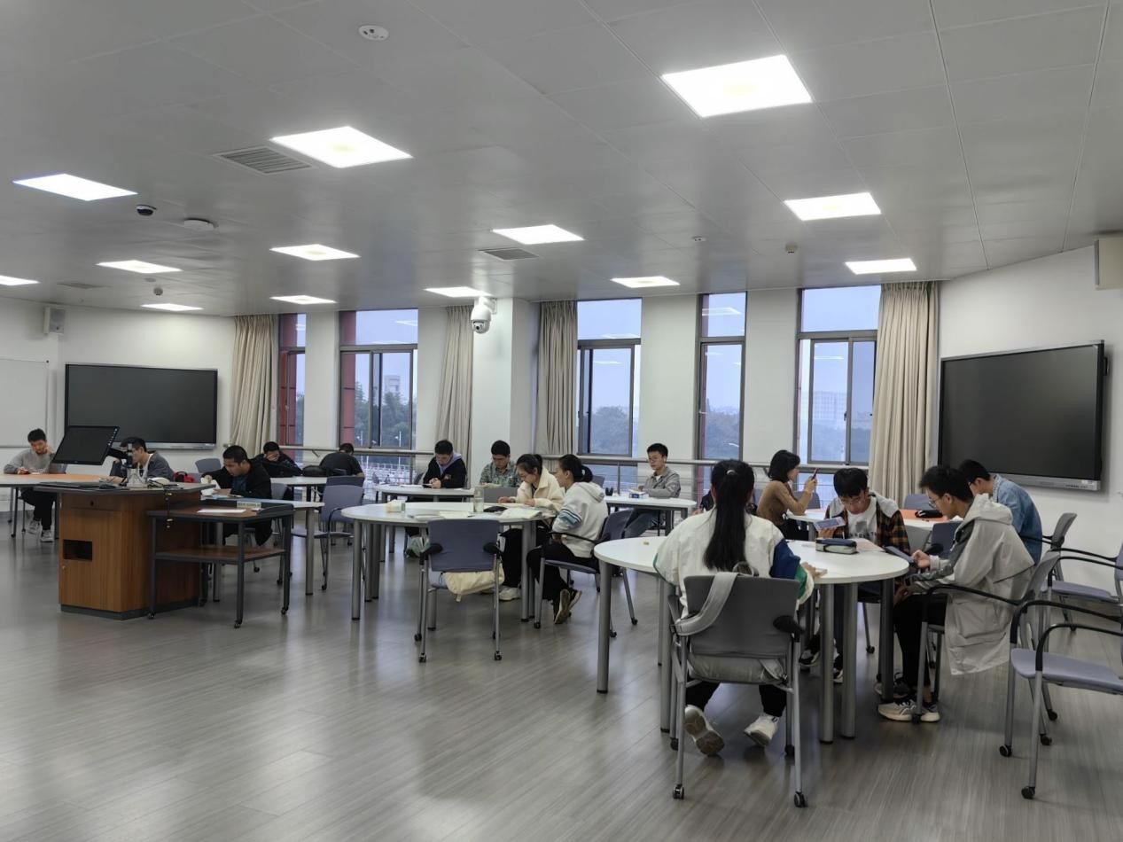的同学们蜂拥而至,迅速坐满教室,紧接着,便进入了火热的朗诵晨读之中。参与活动的同学们兴趣盎然,态度积极,涉猎的书籍内容广泛:历史、文学、艺术、科学......整个楼层都充斥着抑扬顿挫的朗读声与昂扬的青春激情,直至活动结束,仍有同学沉浸在晨读的氛围中不愿离去。活动结束后,干事们留下进行打扫卫生、还原桌椅的收尾工作,以保证后续教室的正常使用。