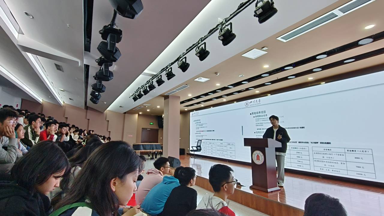 特开展“领航者之声”系列活动,以往届优秀毕业生为代表,充分发挥朋辈引领作用,从学业规划、生活习惯、出国留学、保研考研等方面为新生传授经验宝。系列活动第一期于11月3日晚在i创街致远报告厅开展, 2022届毕业生周俊杰主讲,2023级全体学生和2023级辅导员陈林、申鑫参加。